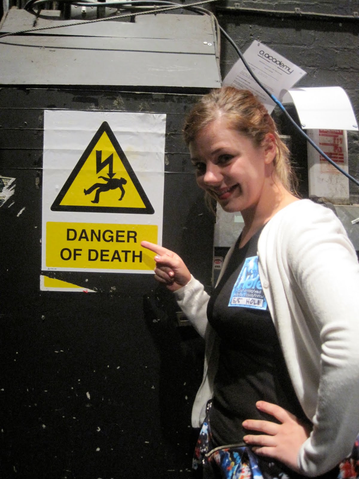 My colleague Rosa and I went down to the venue at 6pm yesterday to run the video from my laptop and do some last minute sound checks and video checks. The staff that were setting up the gig all stopped and watched the film as it played it's practice run and it was a touching moment.Having never been backstage [as in literally on the stage...] I was quite in awe of all the wires everywhere and was terrified of accidentally pulling out the wrong lead after the video had played!